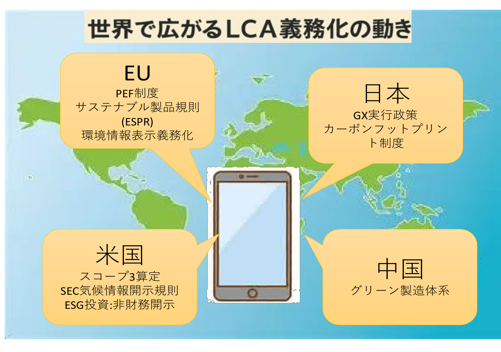 たとえばEUでは、「製品環境フットプリント(PEF)」という制度が進み、製品ごとのLCAデータを共通基準で算定することが求められています。